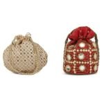 Combo – Designer Embroidered Potli Bag – Golden & Red